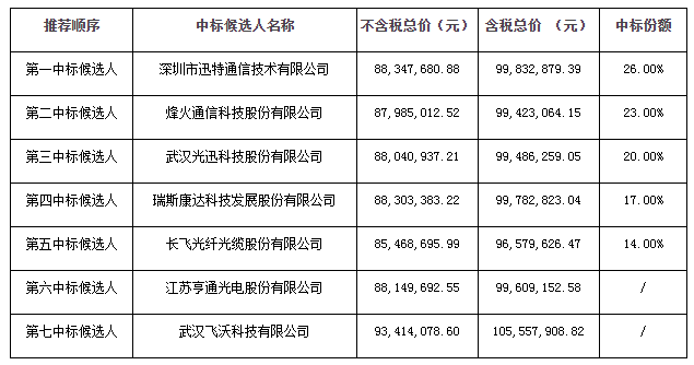烽火通信、光迅、瑞斯康达、长飞等厂商入围湖北移动开放式波分复用设备集采项目